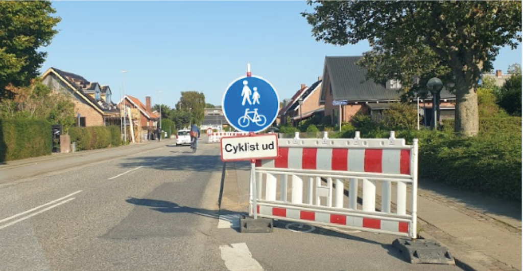 Nogle gange kan man undres over, hvad der skiltes ved vejarbejder. Ofte lader skiltningen til blot at være de tavler, der var med på ladet den dag. Her på Riishøjvej i Aalborg har dagens tavler budt på spredt fægtning om, hvor cyklister og fodgængere skal være. Det blev til en fællessti på kørebanen med en særlig besked til cyklister.