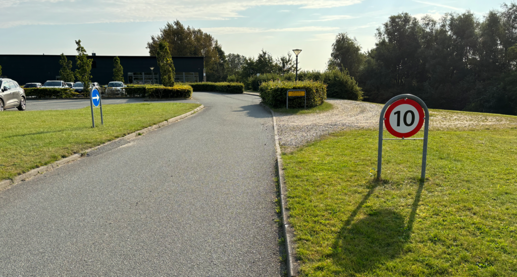 En færdselstavle pr. 8-9 m er godt nok lige vel rigeligt. Så pas på med de skilte.