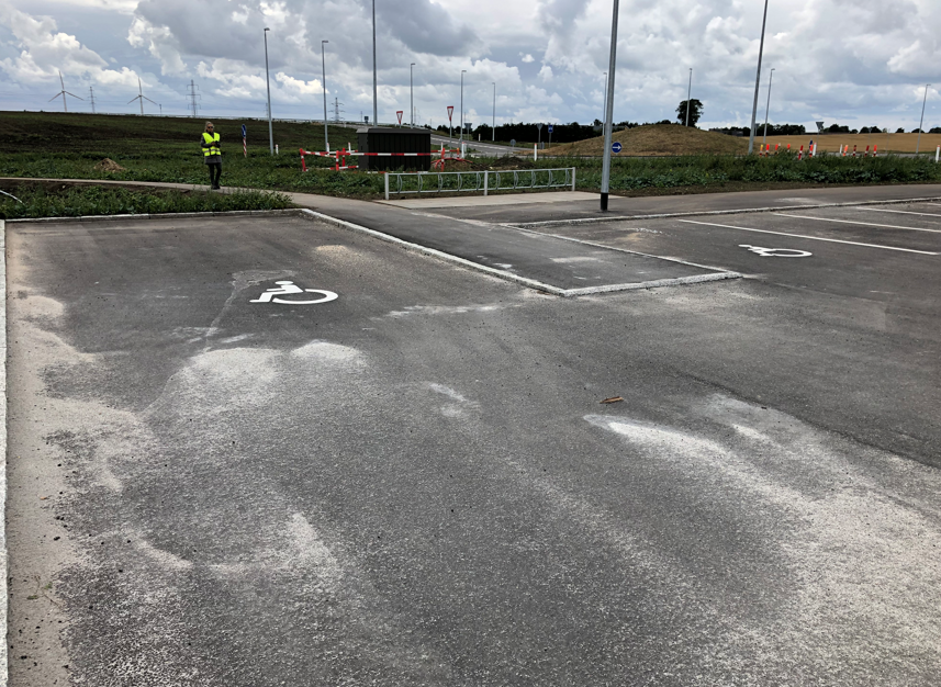 Denne visning af hvordan handicapparkering tilrettelægges for personbil og bus er SBIs svar på tiltale.