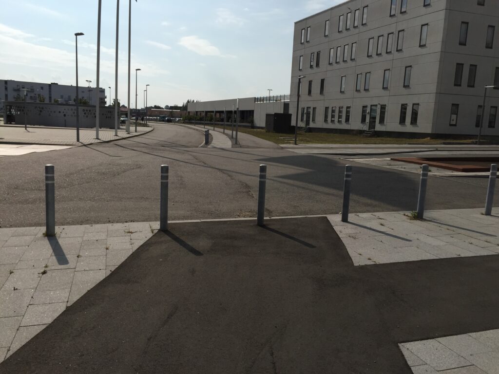 Et sted i Danmark er arkitekterne ikke blevet stoppet i tide, og det har ledt til følgende udformning. Cykelsti med en vigelinje som pullert i et i øvrigt ganske uoverskueligt kryds efterfulgt af en strækning, hvor der er byttet rundt på fortov og cykelsti, så cyklister færdes inderst. Det er da synonym med et parallelsamfund. Spørg nu en fornuftig trafikingeniør inden I finder på sådan en gang misforstået geometrisk udformning.